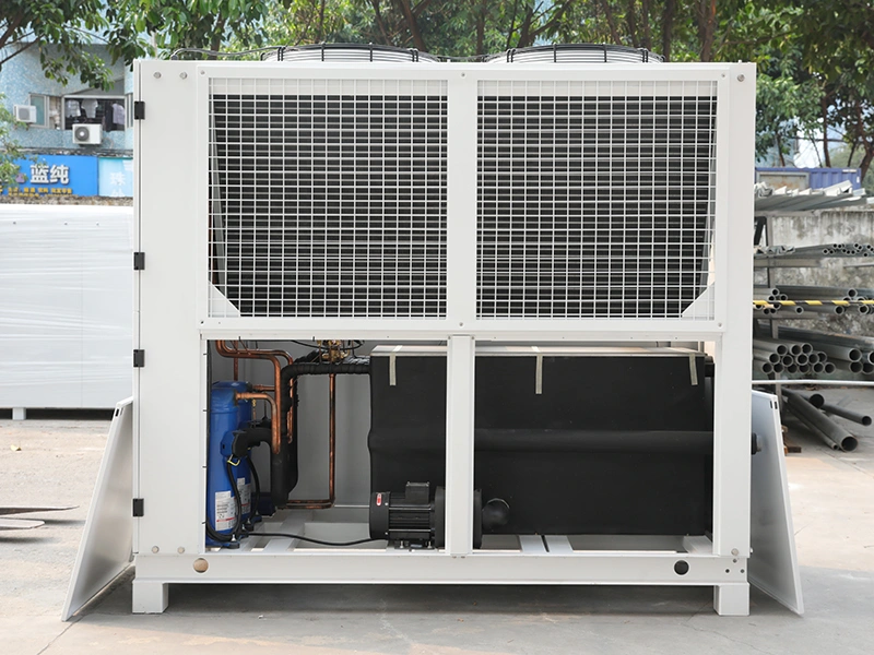 Air-cooled chillers adapt well to a wide range of operating conditions. They are easier to install, require less maintenance, and can be used in many applications. However, for the same cooling capacity, their material cost is usually higher compared to water-cooled models.